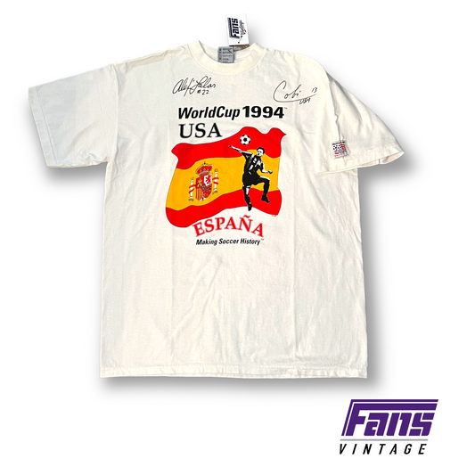 Autographed US Soccer Personalities/Players Alexi Falas & Cobi Jones Vintage World Cup Tee