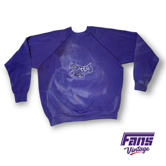 “Thrashed” 1960s Vintage TCU Sweater - Incredible Hand Made Horned Frog on Double Sided Raglan Crewneck