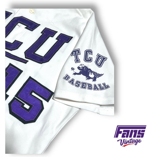 GRAIL - Ultra Rare Vintage TCU Baseball Game Worn 80s Team Jersey with awesome throwback logos and stitched numbering!