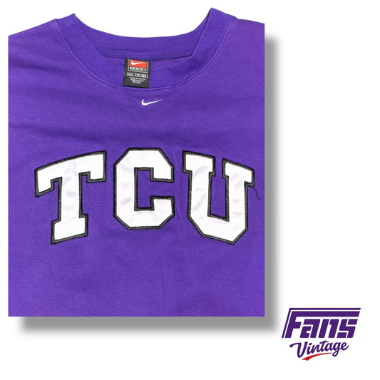 Vintage TCU Y2K Era Crewneck - RARE! Team Custom Nike Center Swoosh with Jersey Style Stitched Lettering - Buttery Soft
