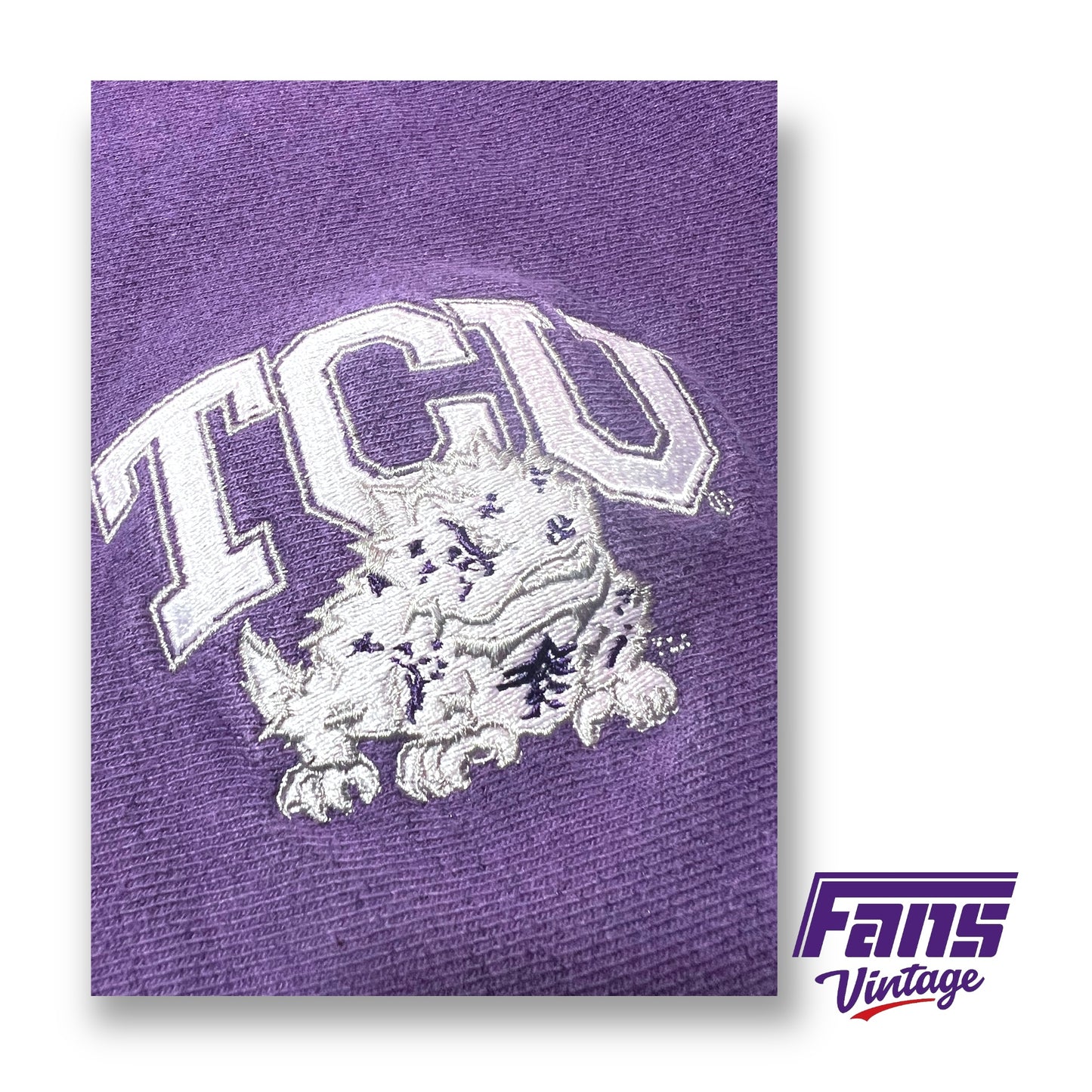 90s Vintage TCU Crewneck Sweater - Purple Champion Reverse Weave with unique embroidery!