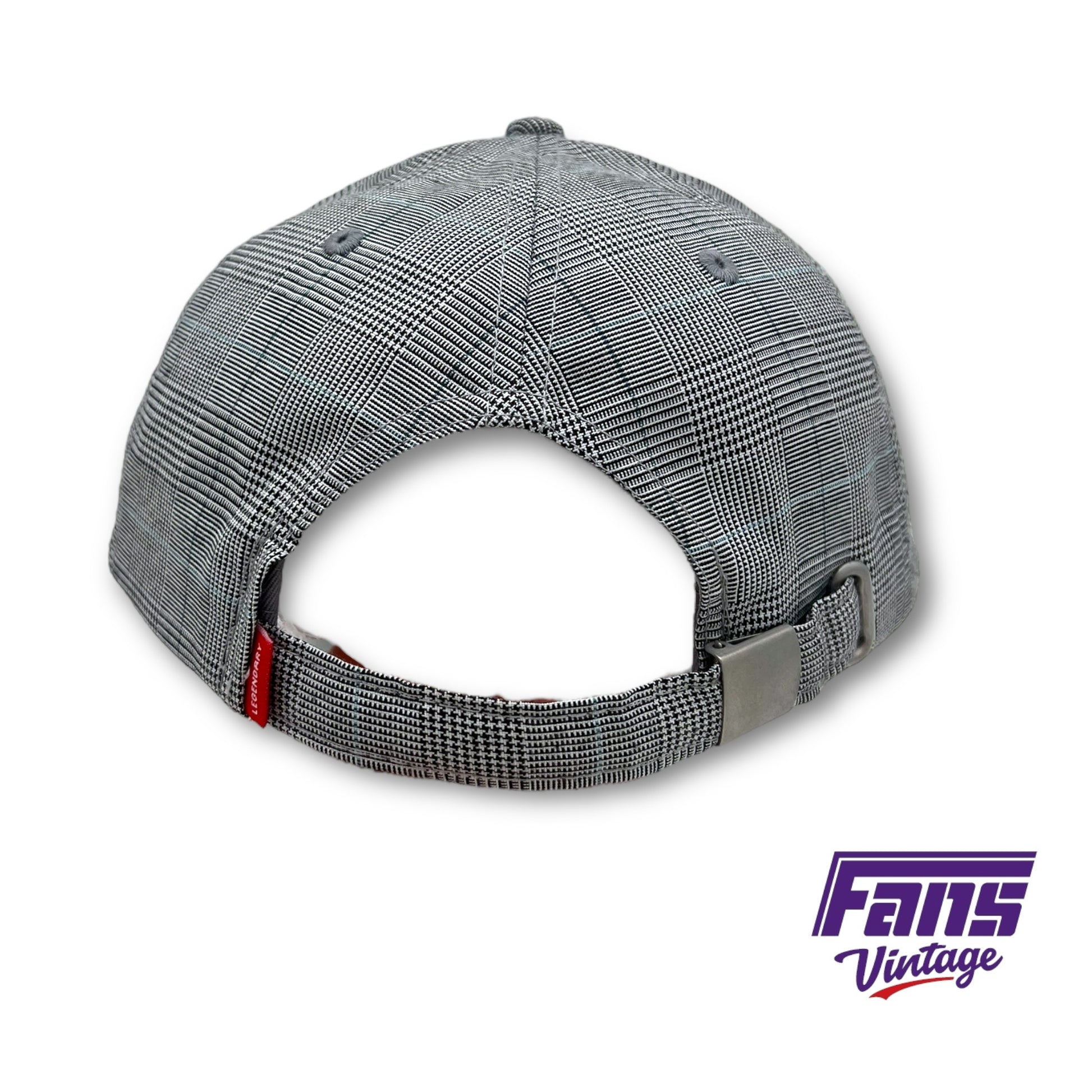 Adjustable strap back with metal buckle. Raised embroidered logo patch.