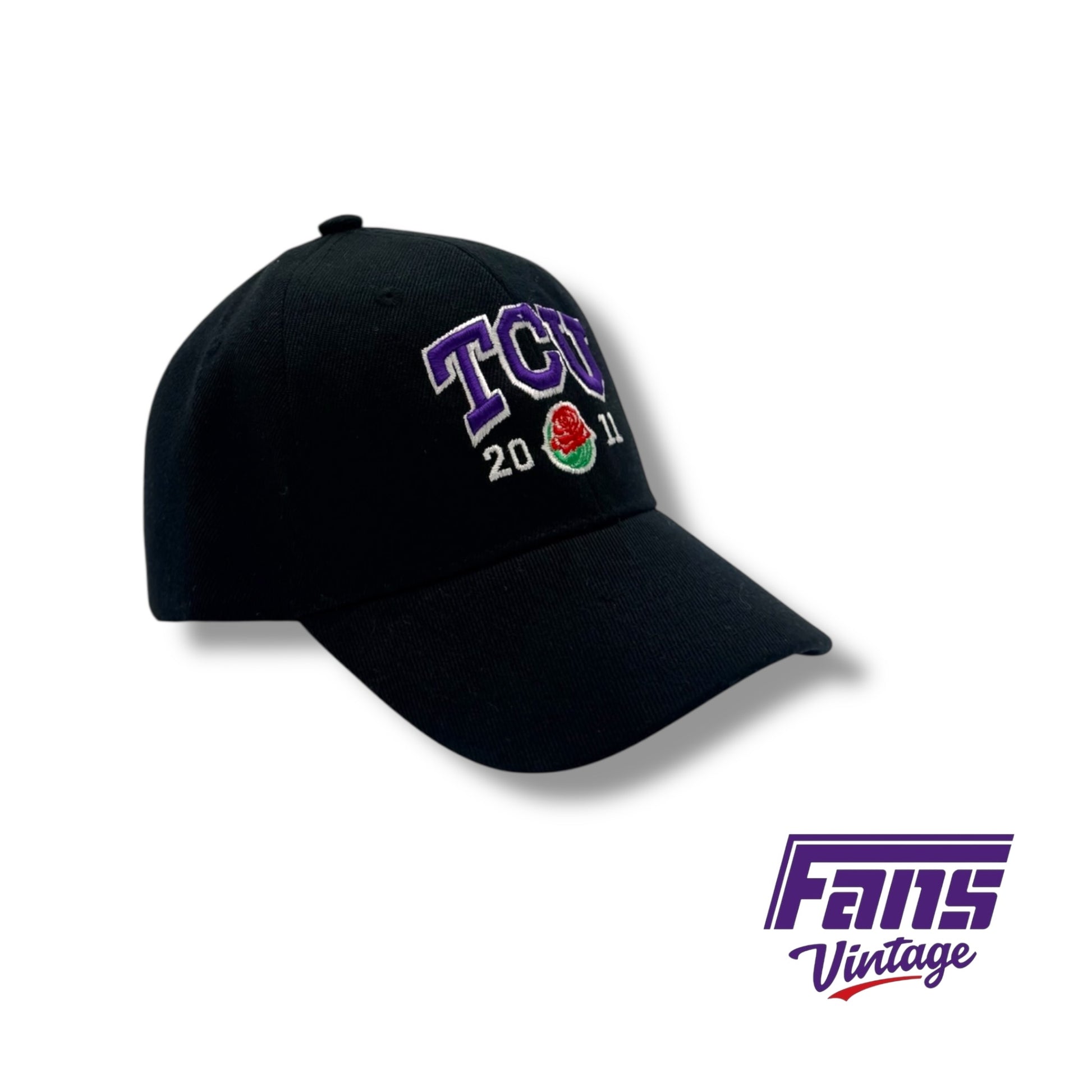 2011 Rose bowl black TCU hat with embroidered logo TCU with rose bowl logo. Velcro style hat