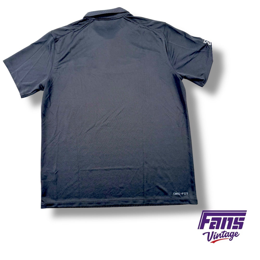 TCU Football Team Issued Blackout Nike Drifit Polo with Diamond Pattern Stripes