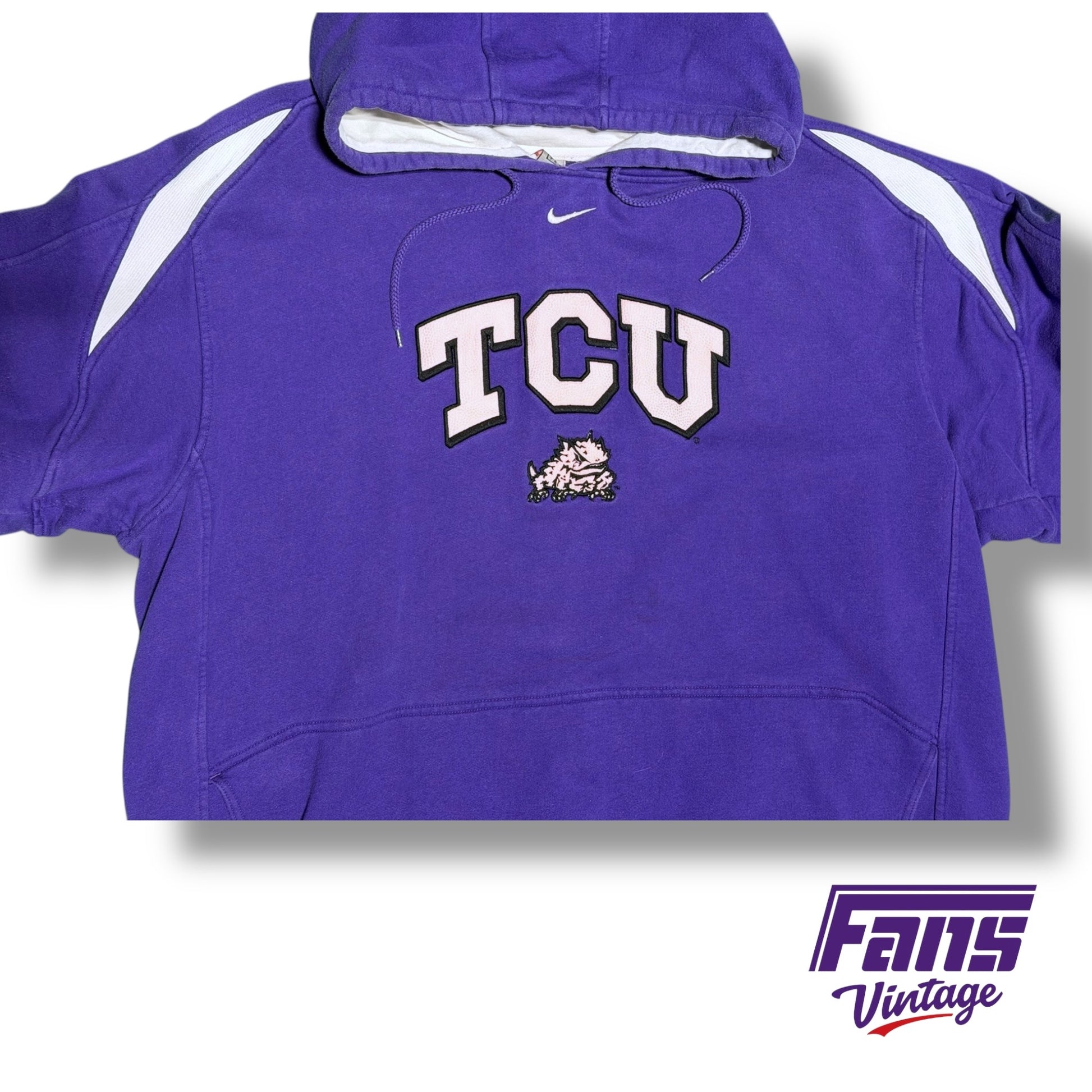 Awesome team issued Nike TCU Basketball hoodie with "center swoosh" embroidered Nike logo coveted by vintage collectors!