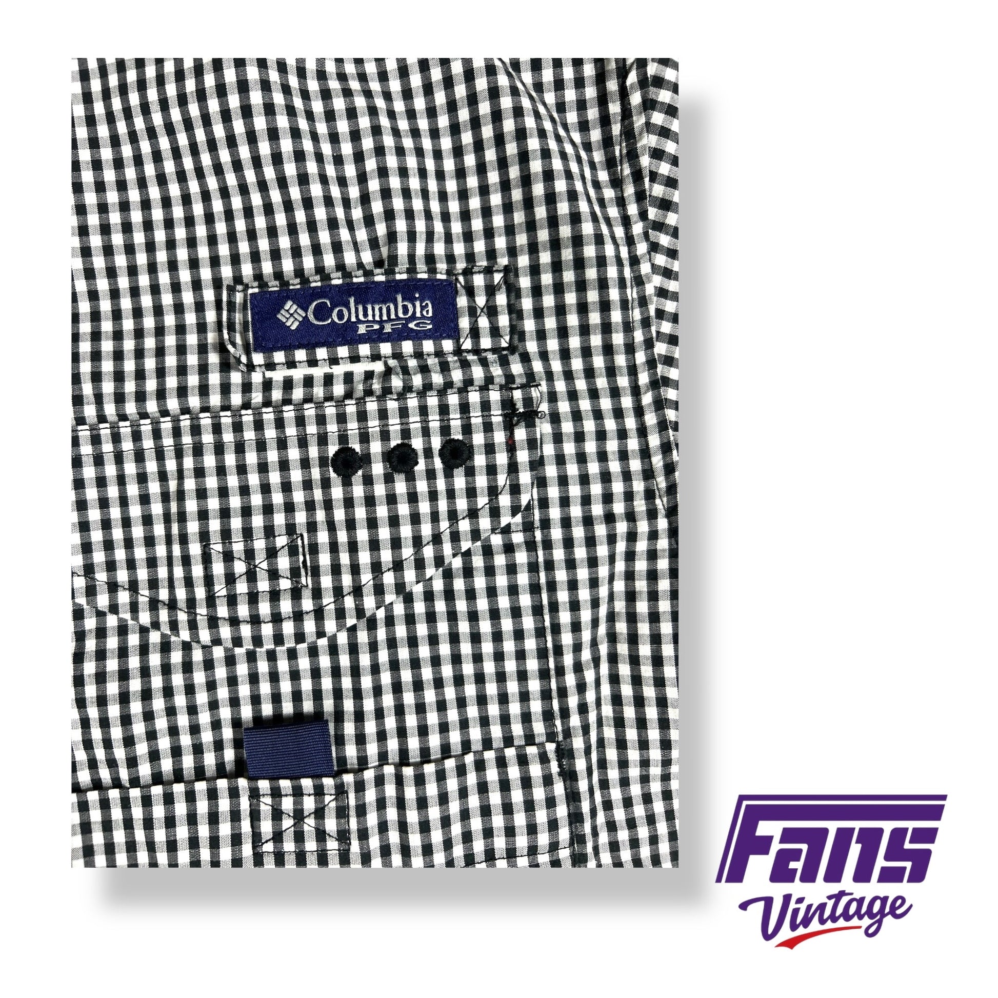 Vintage TCU Columbia PFG Fishing Shirt in Blackout Checkerboard Pattern