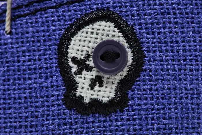 The Zion Williamson x Air Jordan 1 Retro Low OG 'Voodoo Alternate' pays tribute to New Orleans with a vibrant blue suede upper, secured with braided rope laces and fortified with mismatched burlap-like overlays in blue, purple and dark indigo hues. Violet embroidered detailing adorns the black suede toe box, while irregular stitching embellishes the forefoot and signature Swoosh. Vapor Green accents land on the reverse mini-Swoosh embroidered on the lateral toe, along with inverted Nike Air and Wings logos on the woven tongue tag and black suede back tab, respectively. A voodoo doll graphic on the lateral heel completes the playful theme.